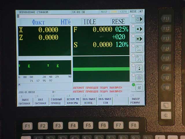 NC210 представляет собой единое, компактное устройство с 14' TFT цветным экраном. Клавиши F1- F8 задают различные режимы работы станка, при этом изменяется вид основного окна. Клавиши F11- F18 являются многофункциональными (в зависимости от выбранного режима). Станок 1516Ф3 (1Е516ПФ2И) с УЧПУ позволяет производить растачивание ступицы вагонного колеса в заданный размер. Пример см. здесь |