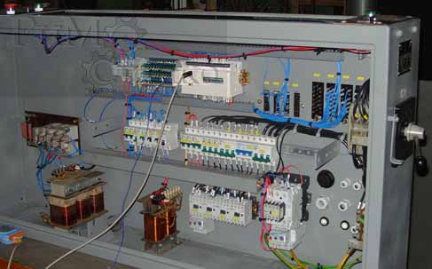 Электрошкаф после модернизации. Ничего лишнего, управление от контроллера и текстовой панели. |